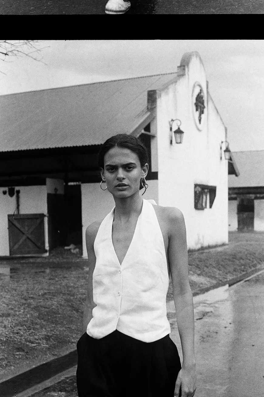 The Abi waistcoat is a tailored and stylish piece with a halter neck design and a free back. It offers a flattering and comfortable fit that will elevate any outfit.