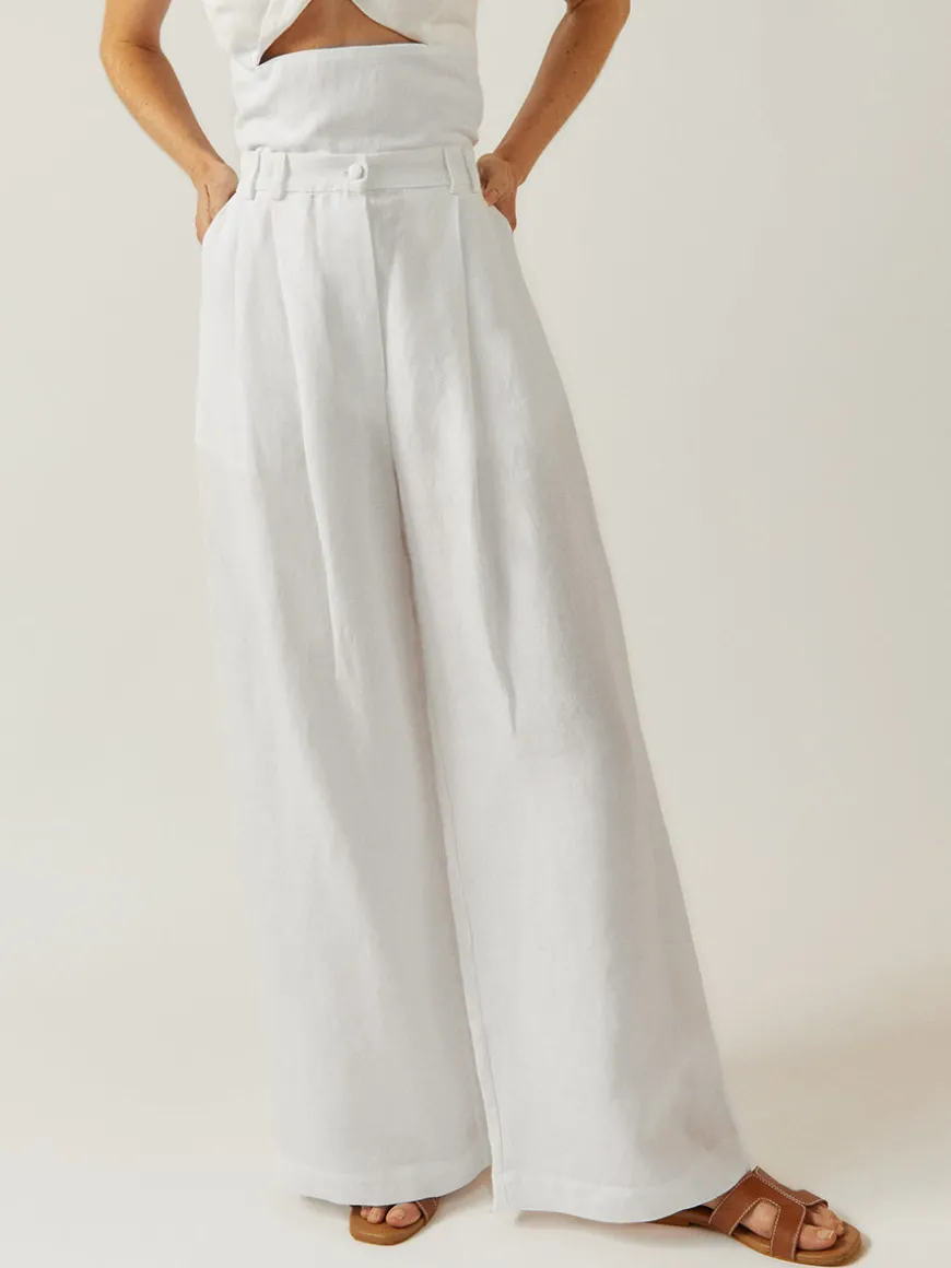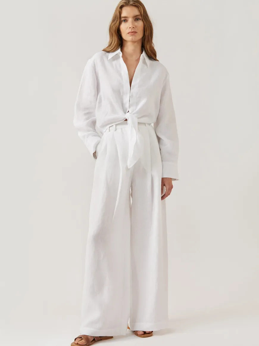 The Alma Trousers are expertly tailored for comfort and elegance. Crafted from organic linen, these trousers offer great breathability. With a flattering high waist and double reverse pleats that fall into voluminous wide legs allows you to move freely.