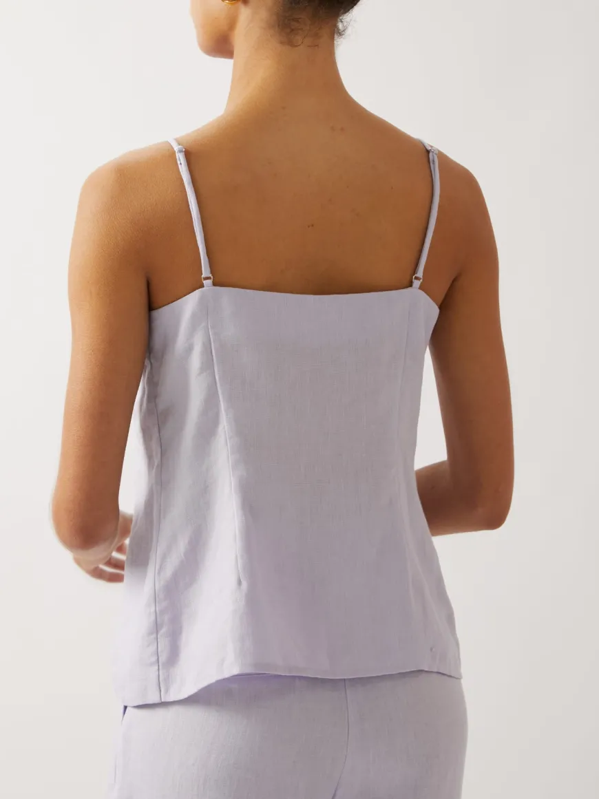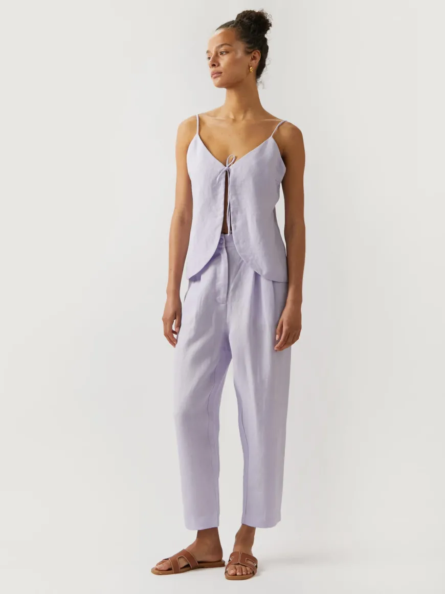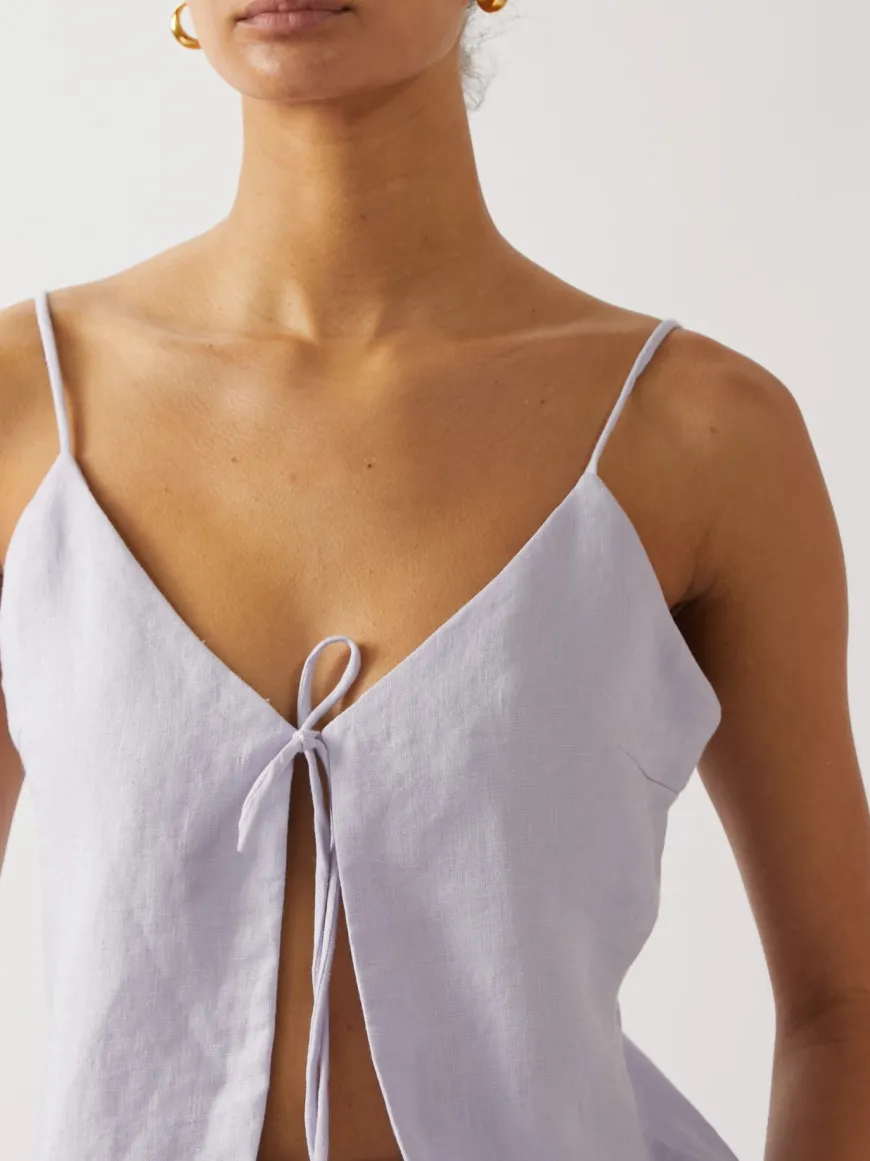 The Almendra top offers a relaxed look with a simple design and string fastener. A classic and effortless style crafted in our breathable, organic linen.