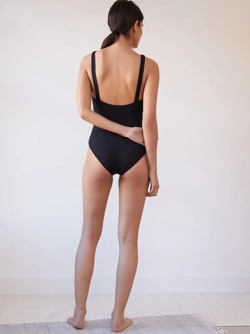 The Carolina Maillot is cut from our signature italian pebbled fabric that molds to your figure. This swimsuit is double lined through out and has soft cups for ultimate support and falls from slender shoulder straps into a square neckline. The supportive wide straps make it a the ideal choice for those with larger busts. Perfect for active days on the beach!