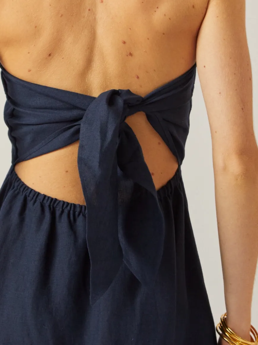 The Dora dress is crafted from breathable organic Linen to a feminine silhouette, featuring a relaxed fit that’s shaped with thin spaghetti straps that can be adjusted in the front for a personalised fit, and a low back that makes it elegant and chic at the same time.
