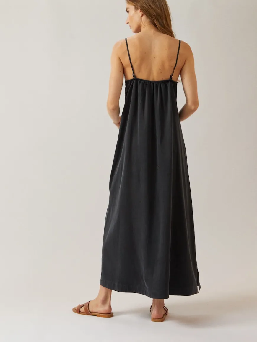 The Lara Dress features a long, flatter silhouette and a unique linen with a twisted keyhole cutout detail for an elegant and chic look. Crafted from lightweight silky Cupro, the Lara Dress is the perfect summer dress.