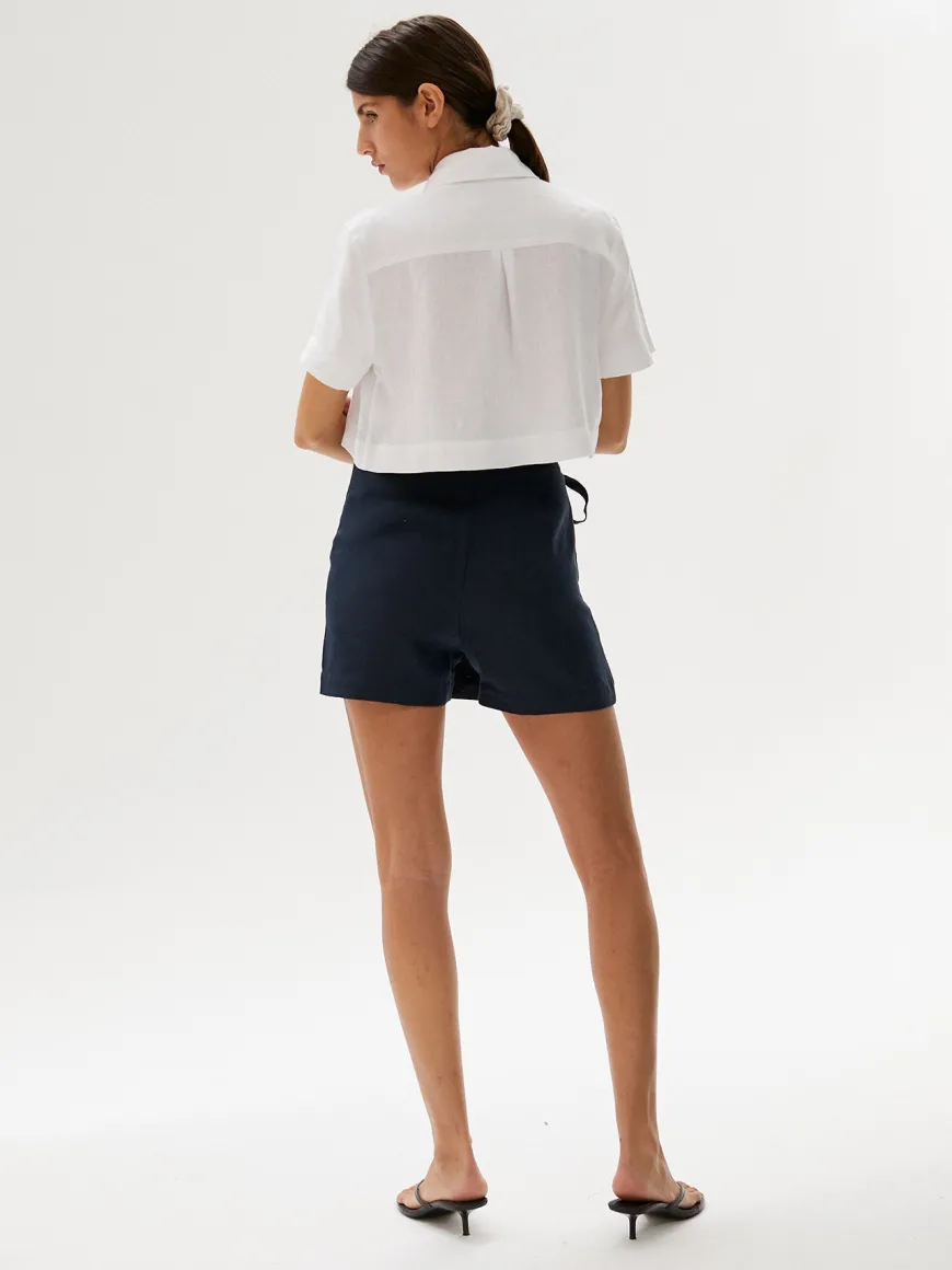 The Lisa shirt has a crop length and is crafted from our breathable organic Belgium linen to a relaxed silhouette.