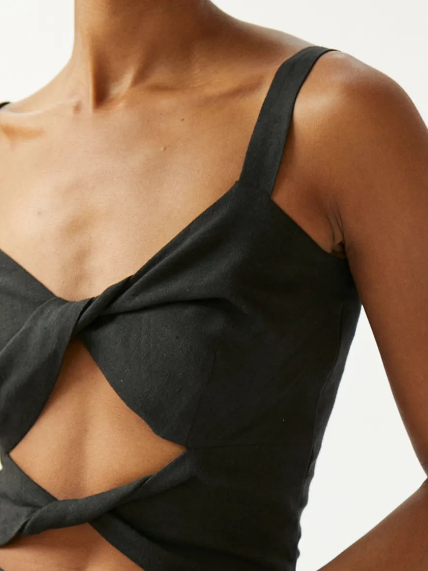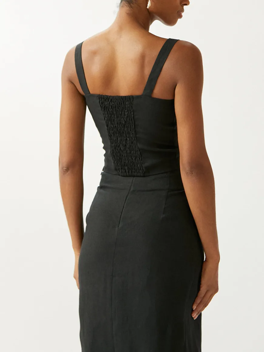 The Mara top is fitted with two twits on the front and an elastic back. Feminine and playful look, it is crafted from breathable organic Belgium linen to a fitted silhouette.