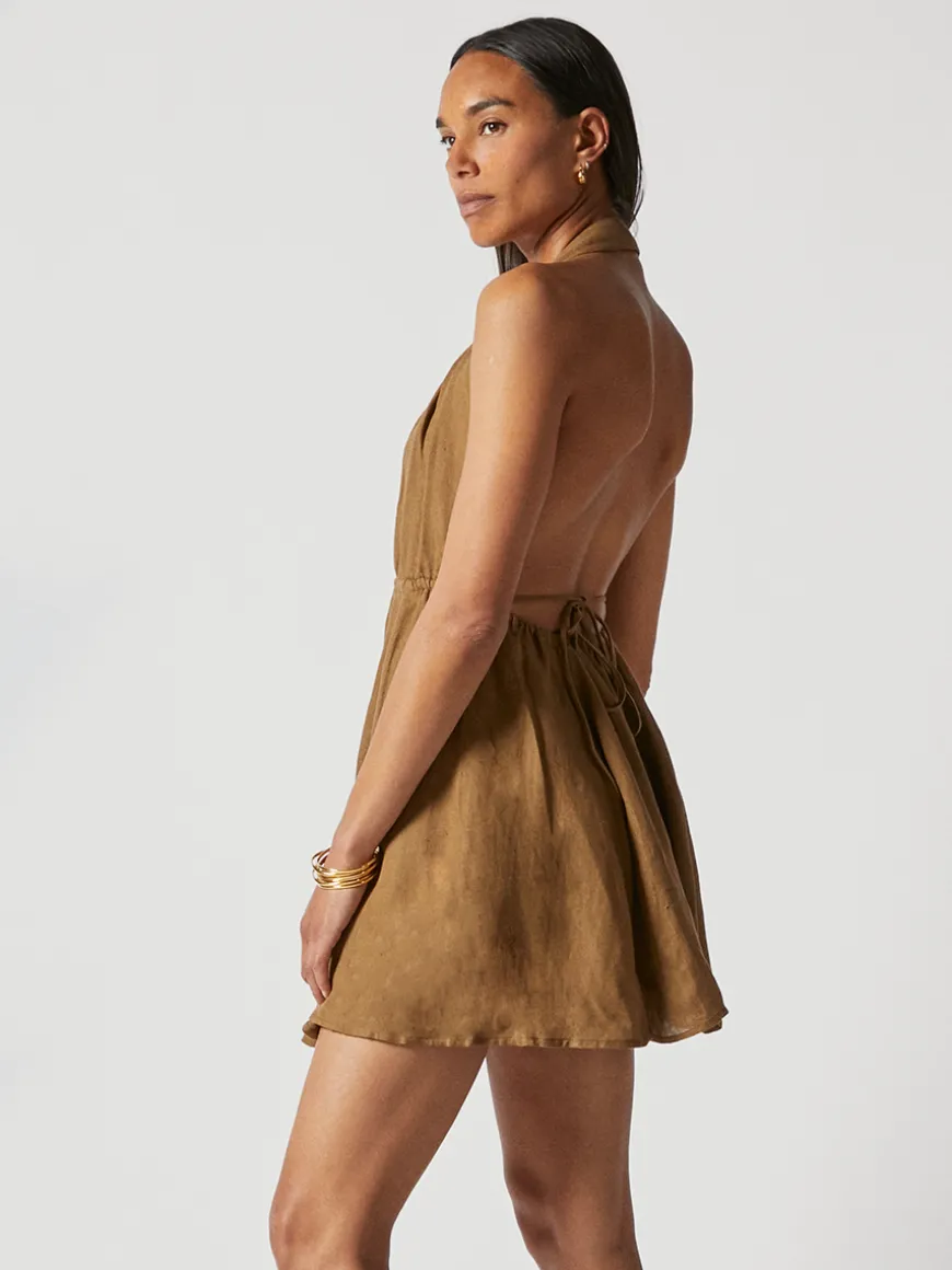 The Mili dress is a floaty mini dress featuring a halter neck and a free back for a comfortable and stylish fit.