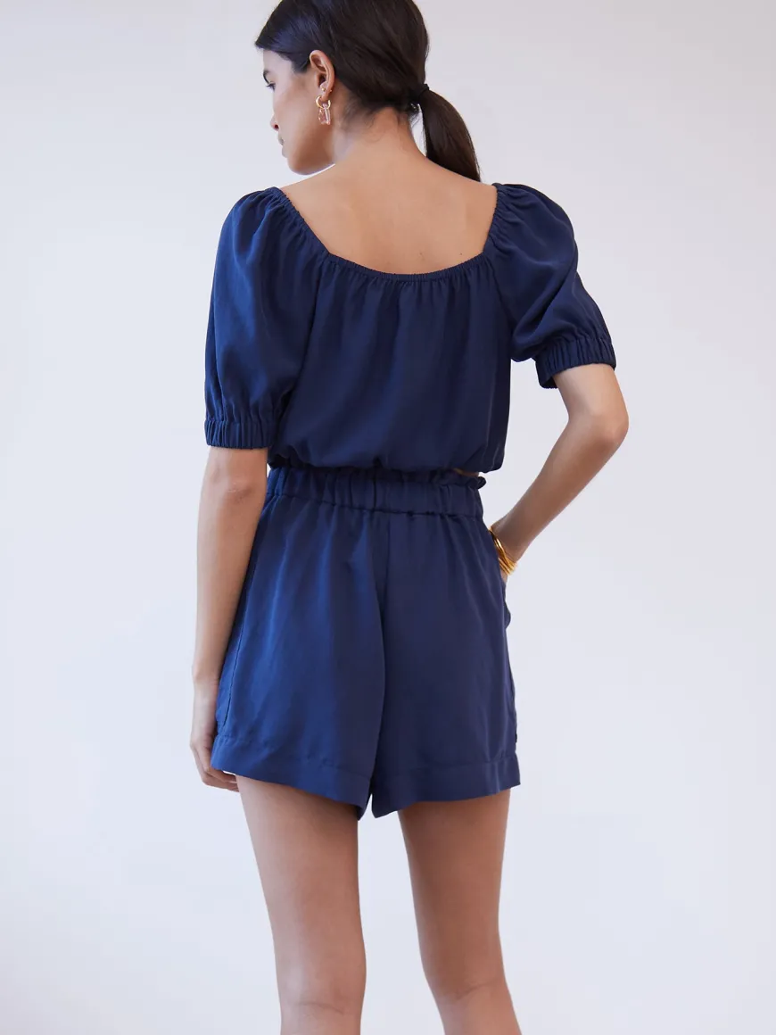 The Siena top is the perfect top to go with any of our bottoms. It’s crafted from breathable silky smooth Cupro. This top has short puffed sleeves, squared neckline and a cropped elasticated hem.
