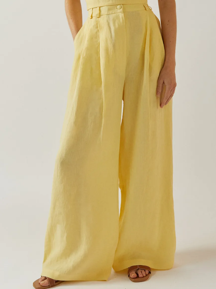 The Alma Trousers are expertly tailored for comfort and elegance. Crafted from organic linen, these trousers offer great breathability. With a flattering high waist and double reverse pleats that fall into voluminous wide legs allows you to move freely.