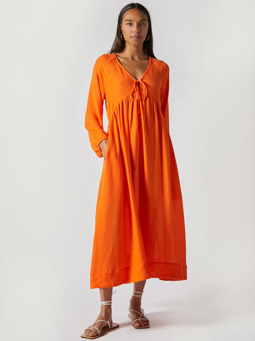 The Elda dress is the perfect beach midi dress, with its long sleeves providing coverage from the sun while still allowing for a cool and breezy feel. Crafted from our breathable organic cotton featuring a floaty silhouette.