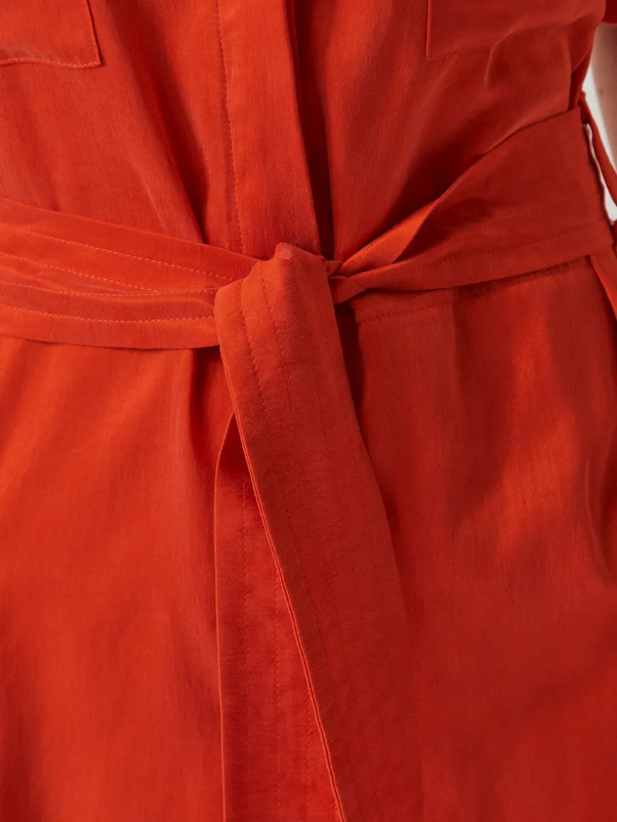 A lightweight jumpsuit made from breathable Cupro, ideal for cooling off on the deck, wandering to new destinations or having lunch by the pool. Comfortable silhouette with a belt on the waist for a personalized fit.