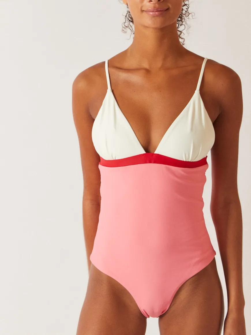 This one-piece is made from our signature econyl fabric, has a low V-shaped front with gathered cups that offer moderate coverage and a scooped back. With a flattering underband that not only highlights the narrowest part of your frame but provides light support, too. The underband is designed to clip open at the back to minimise tan lines.
