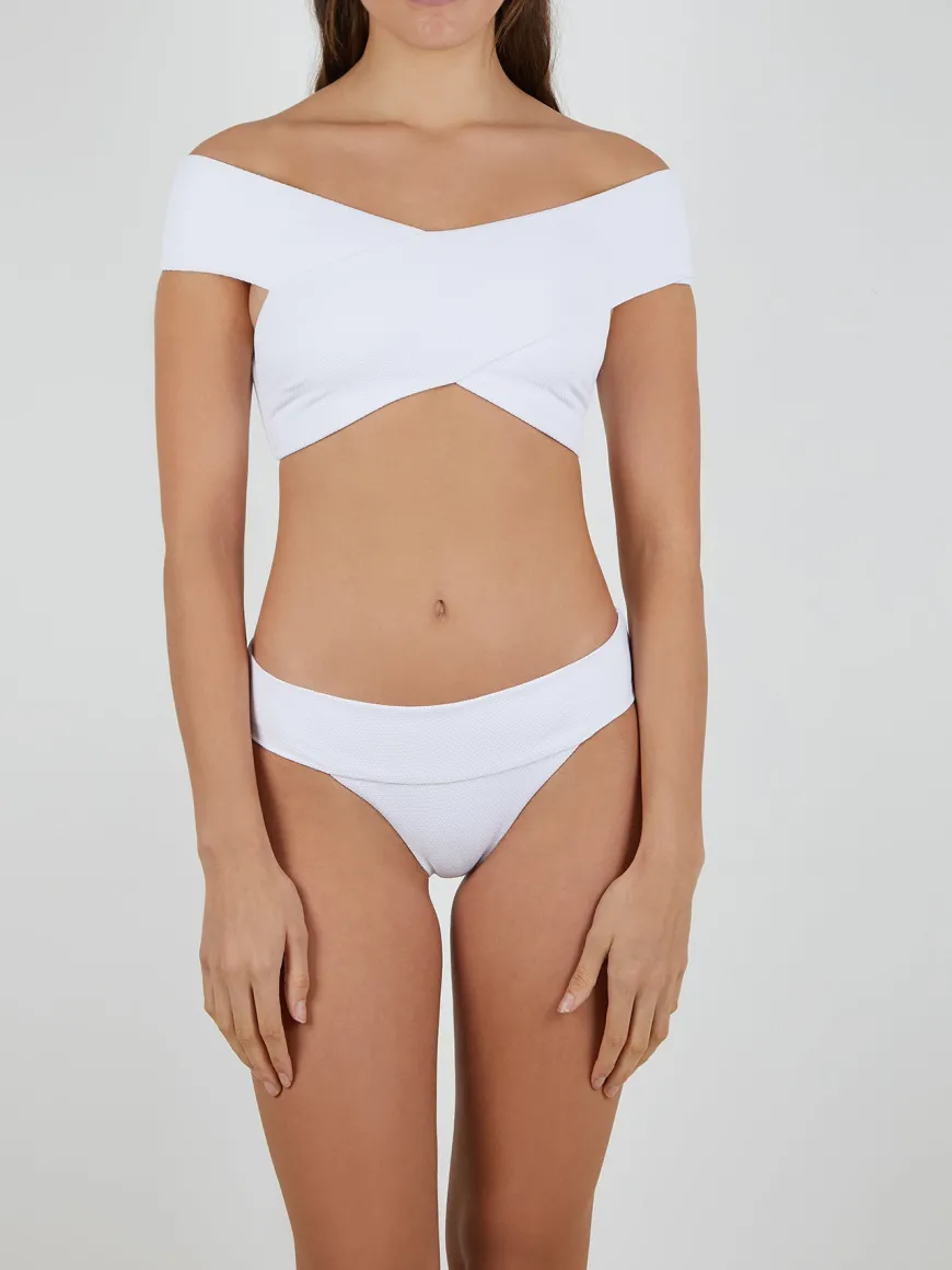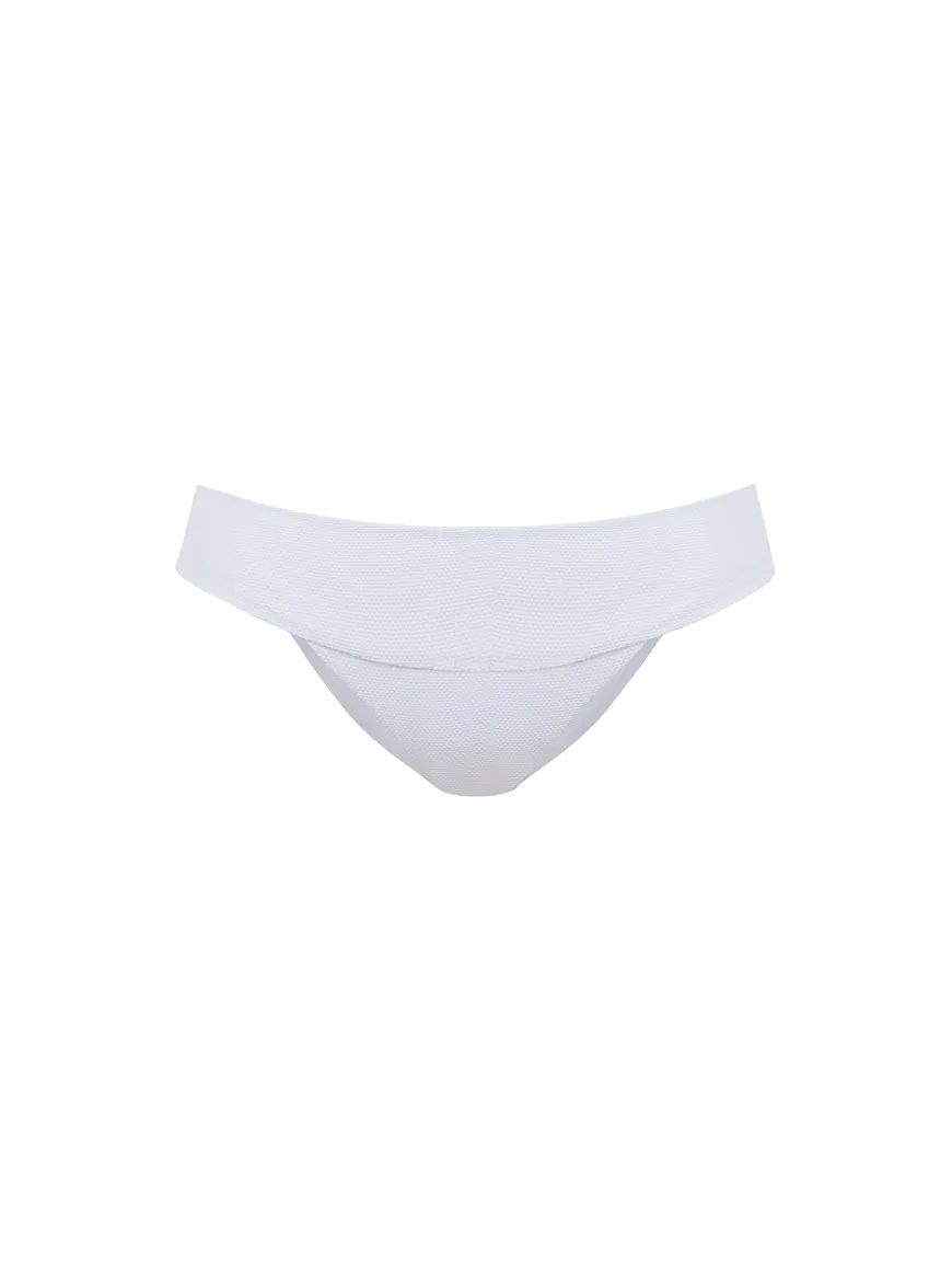 The Paula bottoms in our signature sustainable textured fabric have a waistband that provides a little extra coverage over your tummy while it flatters the hips. It has medium to full coverage in the bottoms. These briefs are fully lined for a smooth fit.