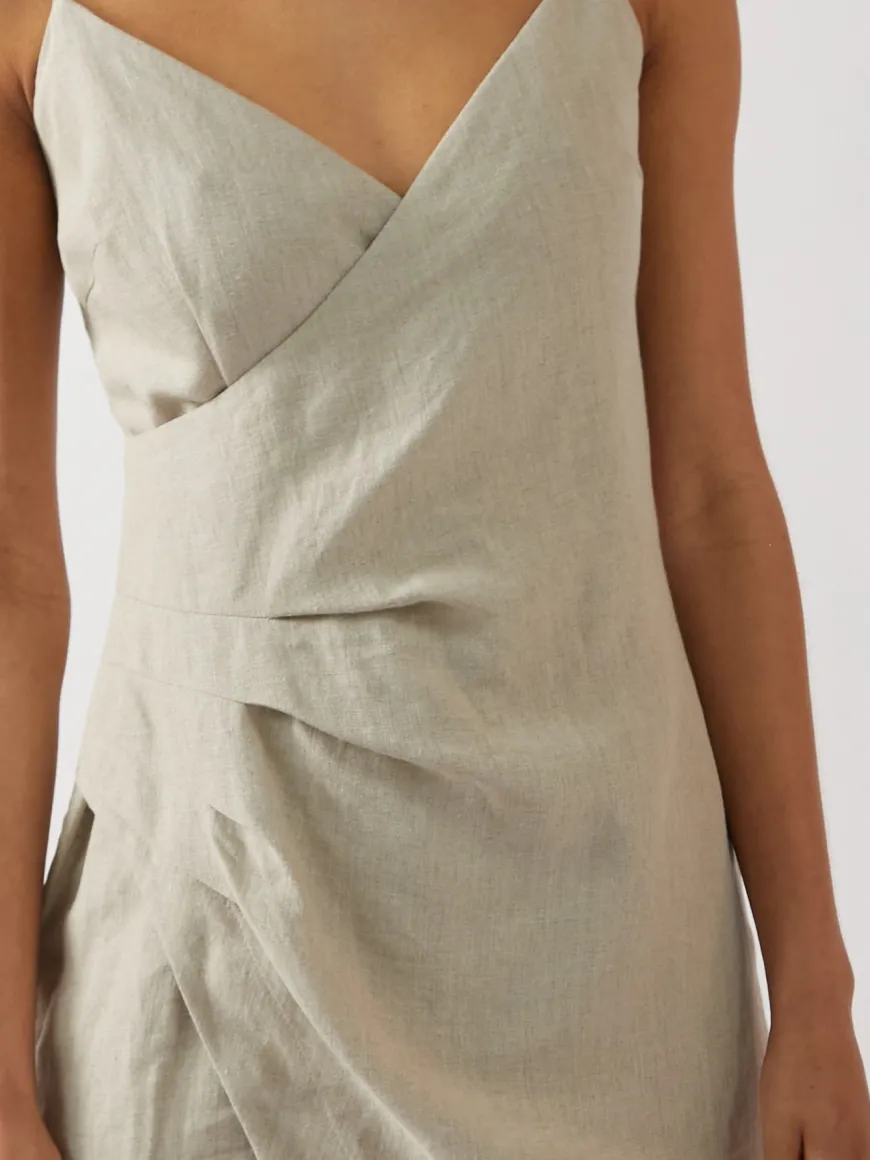 The Tami Dress is a timeless classic with a modern edge. Crafted with luxurious spaghetti straps, a delicate drape on the side, and a slip for comfortable wear, this dress provides effortless elegance for any occasion.